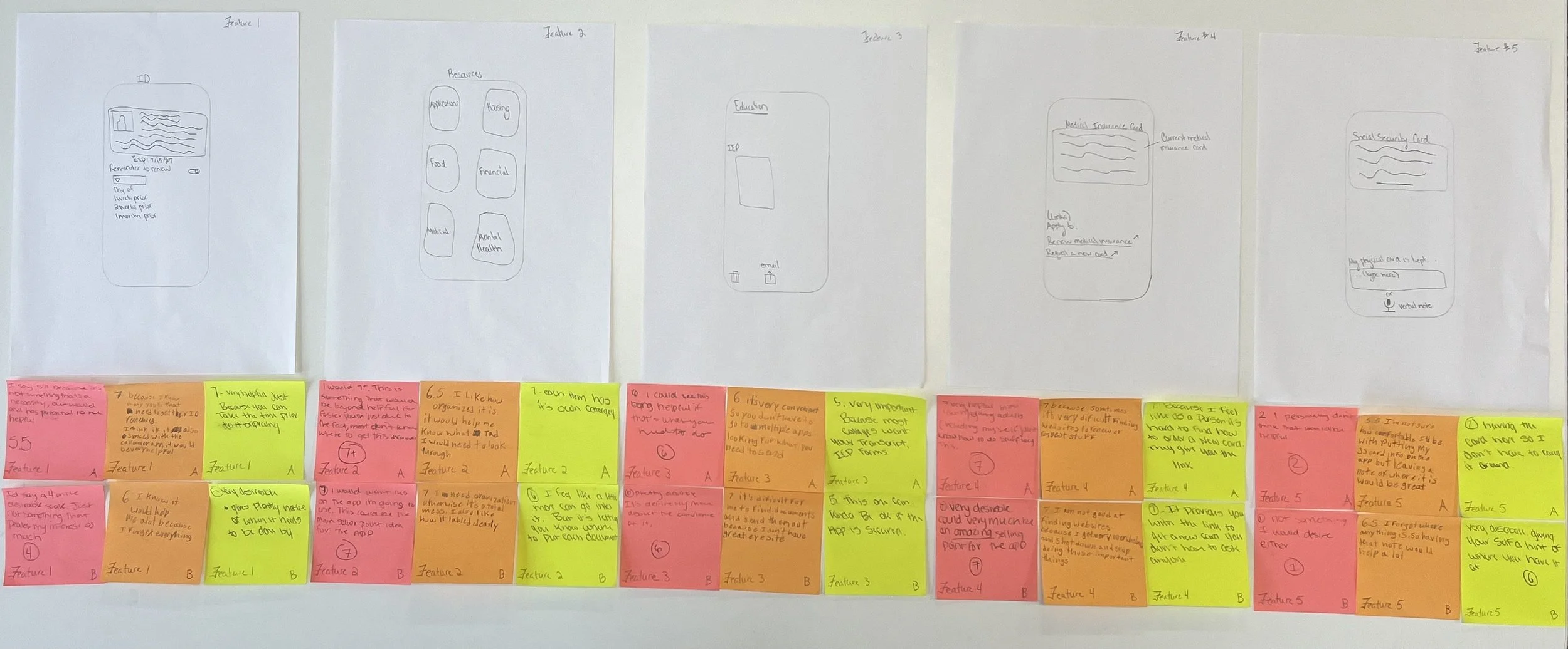 I was able to take feedback from the two provider interviews and generate five sketched feature ideas for the app, and presented them to the youth during the focus group session. I asked youth to rate each feature’s desirability and whether it would or would not be helpful as a feature, and why.