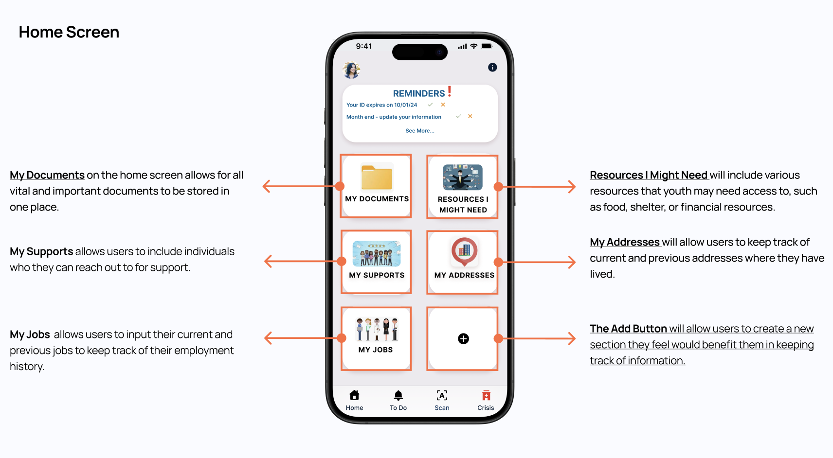 Furthermore, as youth turn 18, they are responsible - in most situations - for keeping track of vital information such as their ID, birth certificate, and social security card. Youth have a difficult time keeping track of their information, and I wanted to find a way to make this process less challenging.