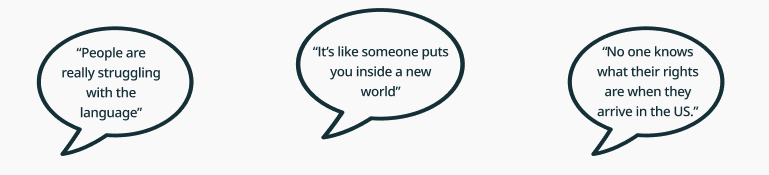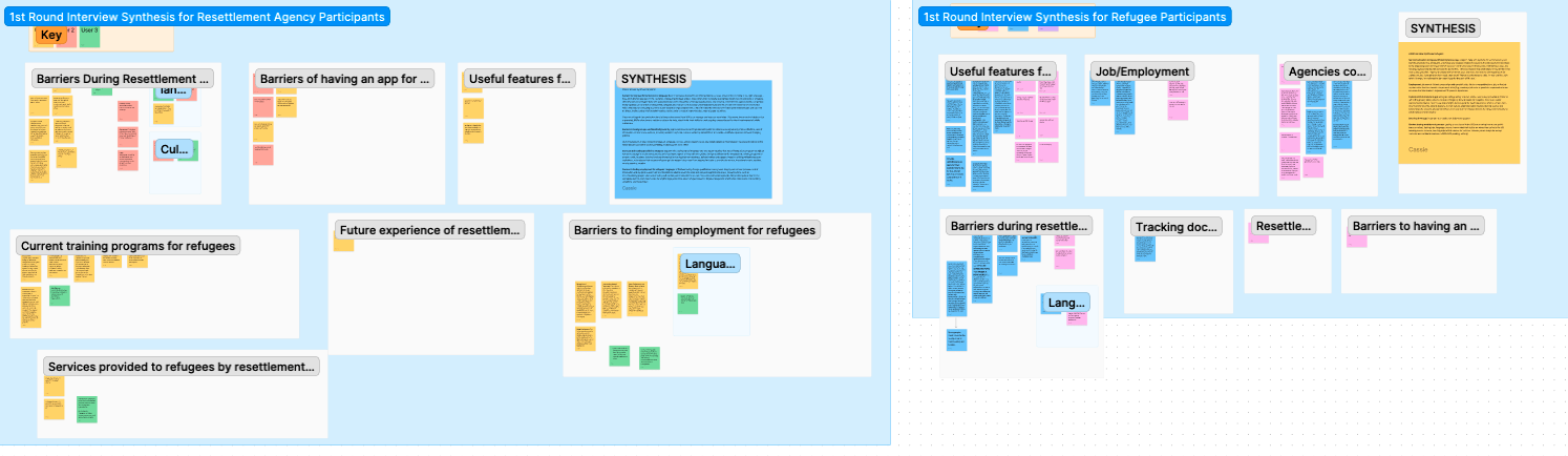 Below is an example of one of the themes that helped guide and inform the design and features of the app. We had previous information about some of the resettlement process based on secondary research, but we learned about many more barriers that individuals experienced first-hand when going through their own resettlement process.