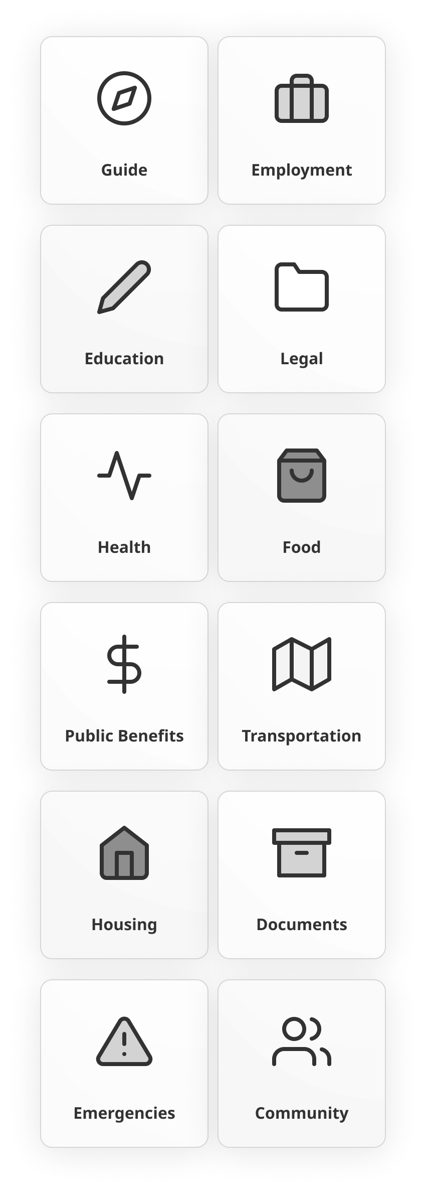Refugees and immigrants face several challenges during the resettlement process, and there is a lack of effective tools that aid in navigating this complicated process. Some of these challenges include: managing extensive documentation required by various agencies; finding employment; and accessing essential services such as housing, health care, and education.