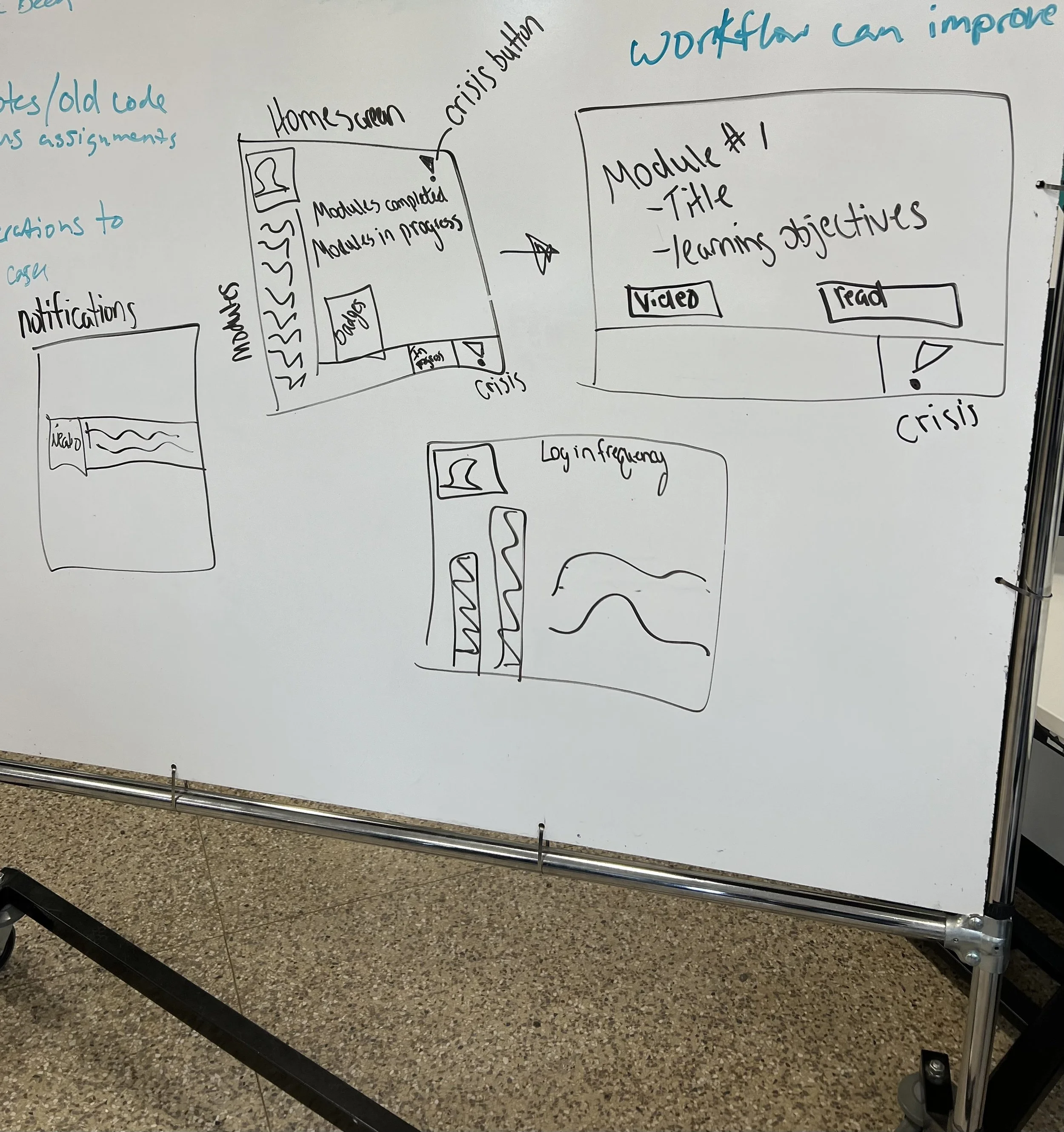Because the app hadn’t been created yet, my team honed in on visualizing the screens and experiences users would encounter, including receiving notifications, visualizing the home screen and module screen, and visualizing how the screen may look when users are monitoring progress of module completion. This would give stakeholders a visual of how the screens could look.
