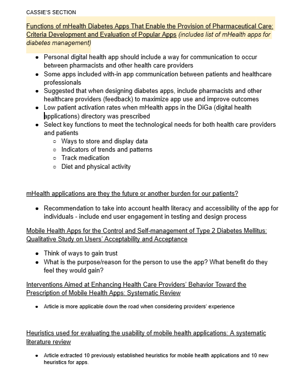 Not really knowing much about digital therapeutics, we needed to deep dive into relevant research. We split up research articles and created a shared Googledoc to generate our research findings.